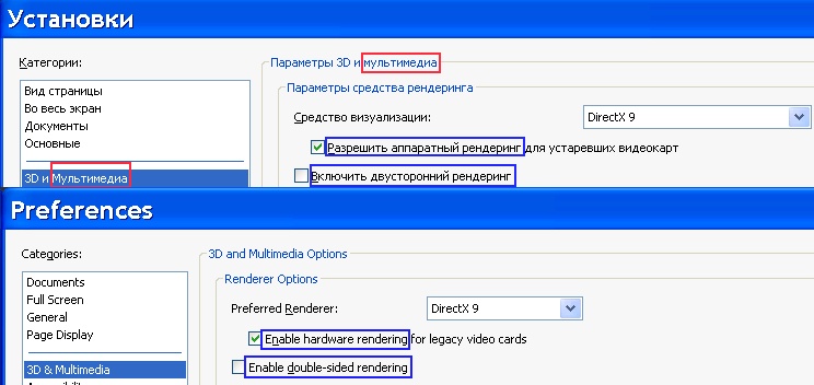В настройках в названии вкладки слово «Мультимедиа» написано с прописной буквы (что уже само по себе является ошибкой), внутри вкладки в аналогичной ситуации — со строчной. В абсолютно аналогичных ситуациях в смежных параметрах словосочетание «Enable rendering» переведено как «Включить рендеринг» и «Разрешить рендеринг»: