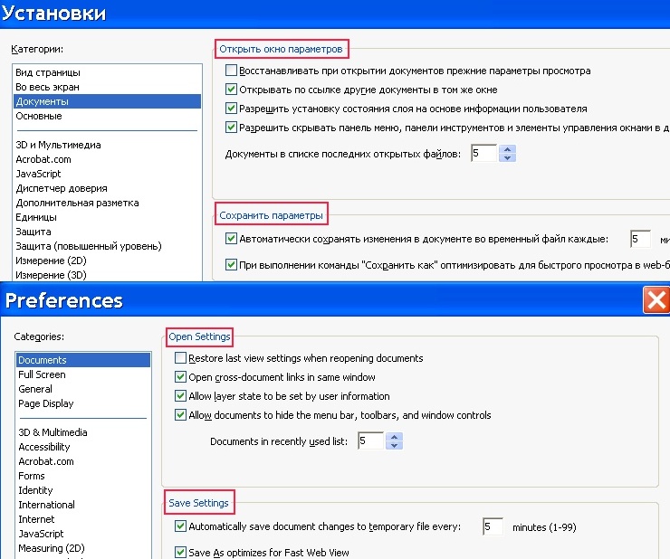 Раздел «Open Settings» переведен как «Открыть окно параметров», тогда как имеются в виду, конечно же, «Параметры открытия». То же самое в разделе «Save Settings»: «Сохранить параметры» вместо «Параметры сохранения».
